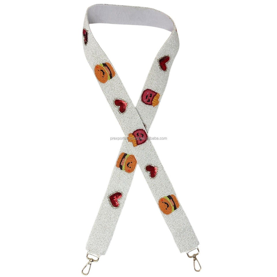 Mardi Gras Beaded Cotton Fabric Bag Strap Seed Bead Purse Strap Hooks Handmade Crossbody Strap Custom Shoulder Strap Portable