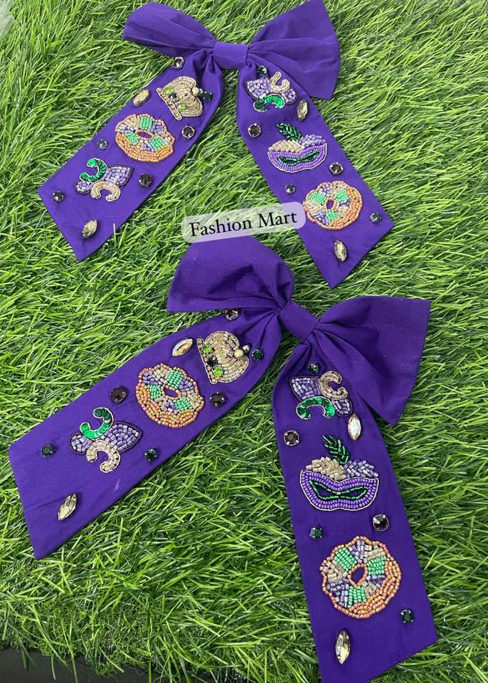 Mardi Gras Best Quality Beaded Alligator Hair Bows for Girls and Women Hairbands