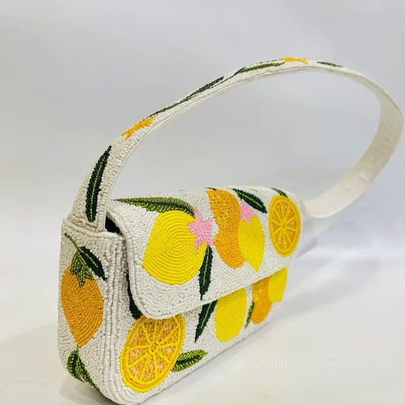 Mardi Gras Crawfish Lobster Beaded Embroidery Classic Style Mini Zipper Coin Pouch Silk Screen Printed Design