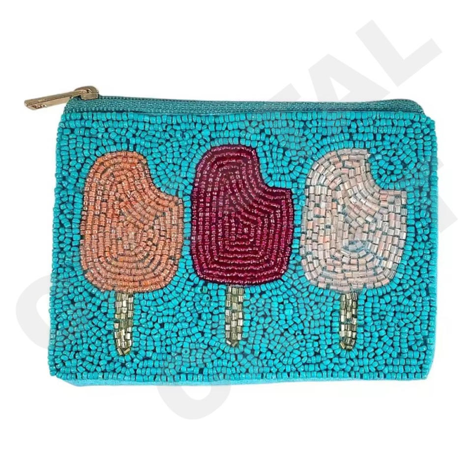 Mardi Gras Design Customized Seed Beaded Coin Pouch Wallet Beautiful Coin Purse with Fashionable Accessory Features