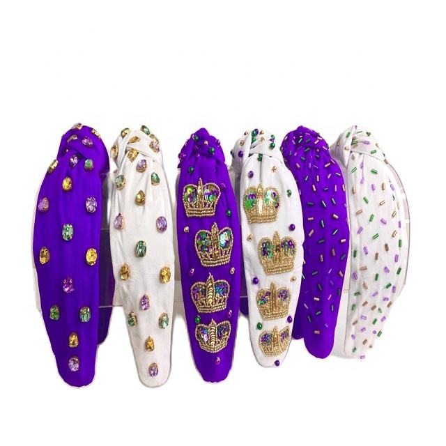 Mardi Gras Headbands Sequin Seed Beaded Hairbands Girls Accessory Indian Hand Embroidered Headbands Style Mardi Beaded Hairbands