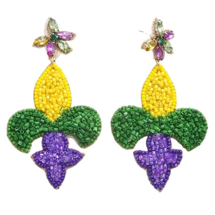 Mardi Gras Indian Handmade Seed Beaded Earrings for Women Fashion embroidery earrings party style festival from India