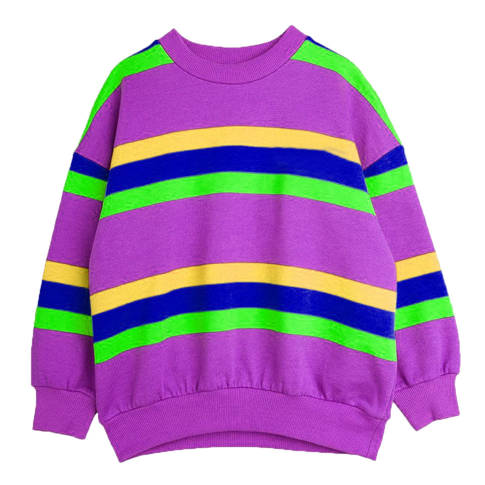Mardi Gras Long Sleeve Round Neck Sweatshirt Adults and Kids Polyester Golden Green Pink Stripe Shirt for Children Sororities