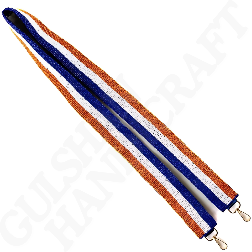 Mardi Gras Stripe Beaded Strap for Handbags & Totes Handcrafted Purple Green Gold Accessory for Crossbody Bags-Cotton Fabric