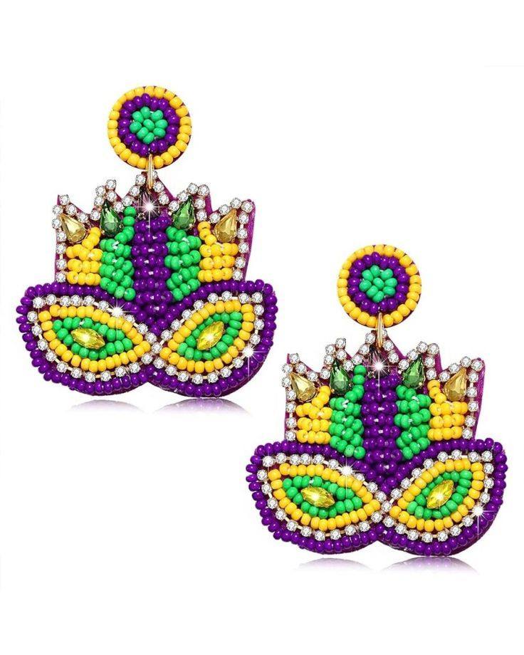 Mardi gras Earrings Handwoven and Hand Embroidered Glass Beads Fashionable Hoop Design for Party Wedding Gift