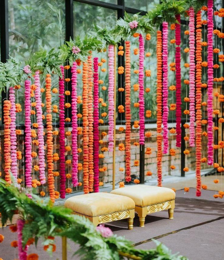 Marigold Sequence String for Ganpati Decoration Haldi Backdrop for Indian Diwali Housewarming Halloween for Festive Home Decor
