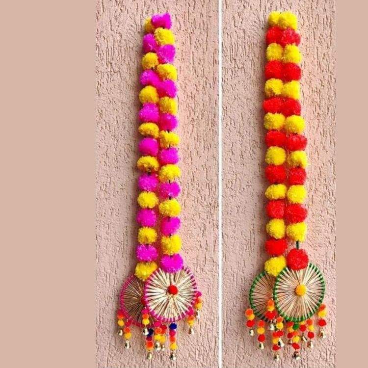 Handmade Ethnic Floral Art with Marigold Tassels for Stylish Home Decor and Birthday Festive Celebrations on Sale