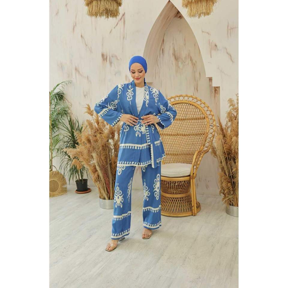 Marina Indigo 2-Piece Women's Set Patterned Viscose Hijab