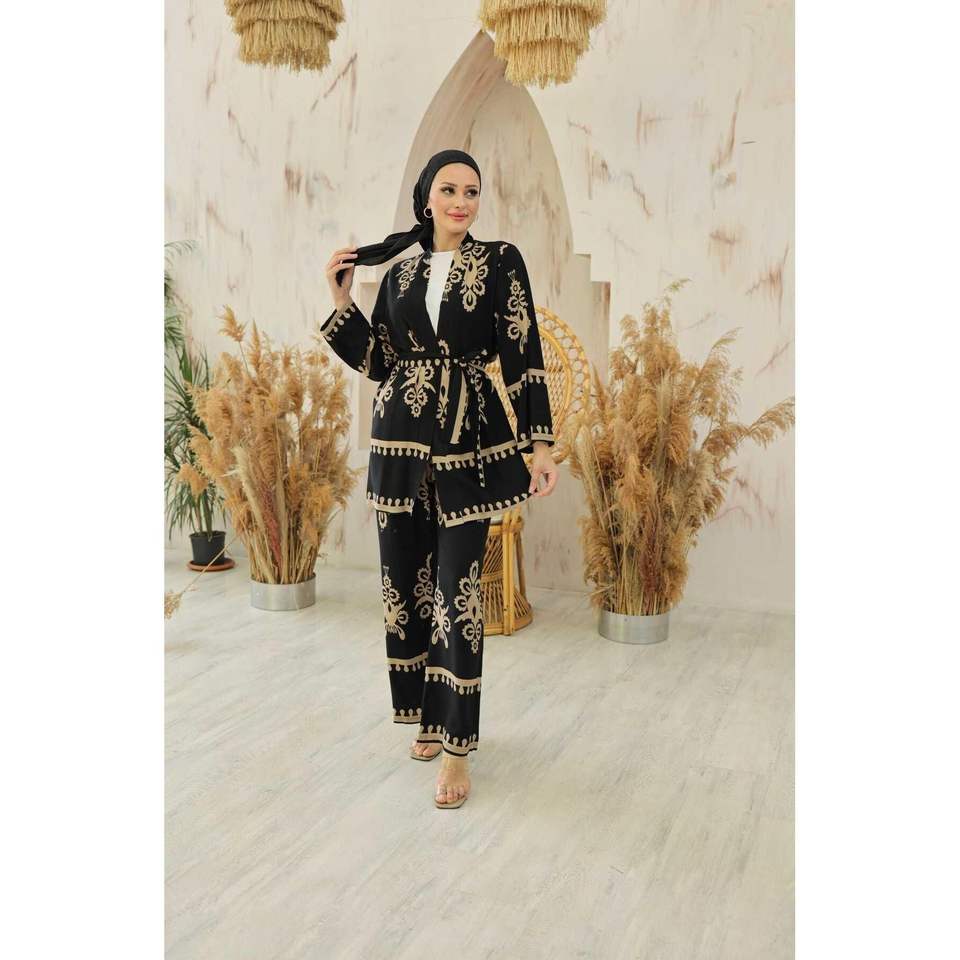 Marina Patterned Viscose Hijab 2-Piece Women's Set in Mink Color
