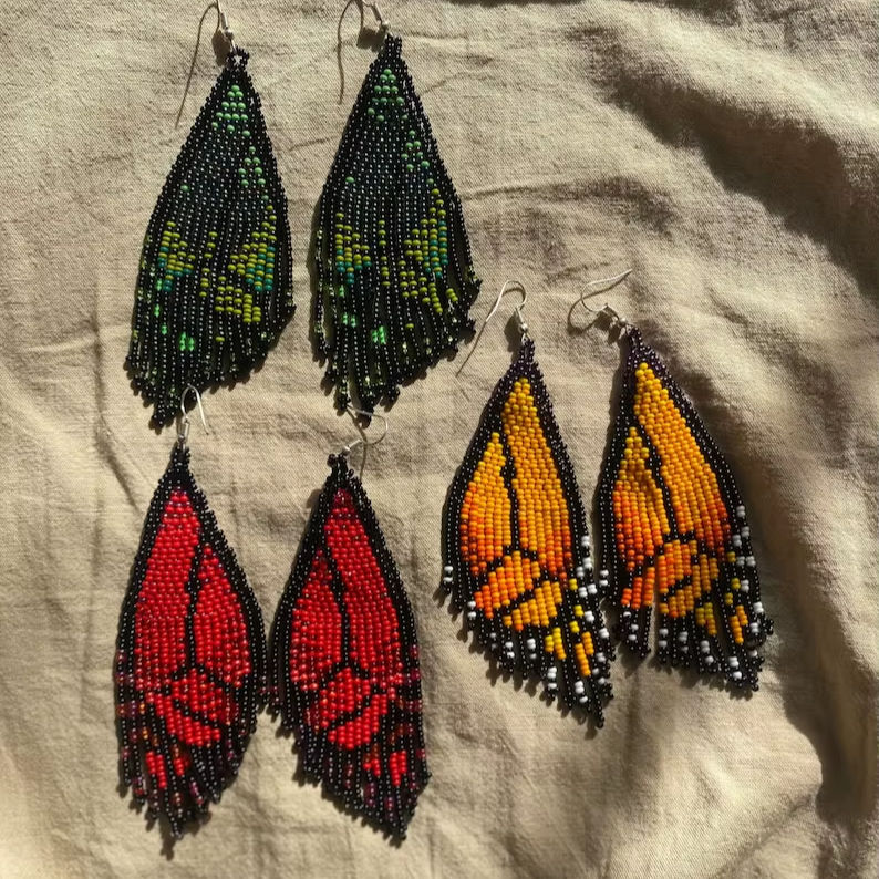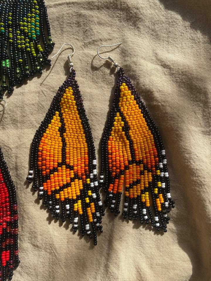 Mariposa butterfly style indigenous beaded shamanic ceremonial earrings