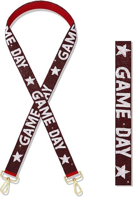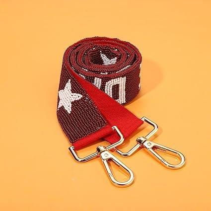 Maroon Beaded Game Day Handbag Strap Adjustable Replacement Shoulder Crossbody Bag Strap with White Stars and Gold Clips