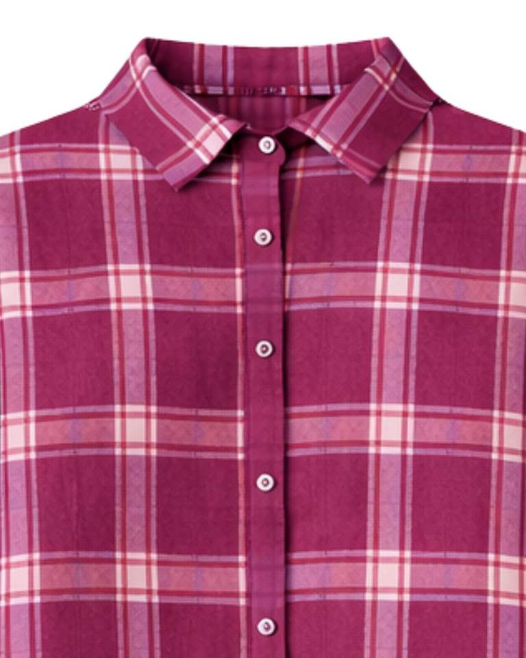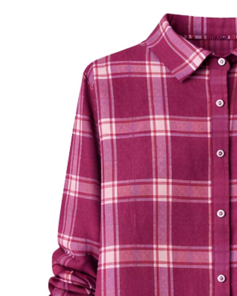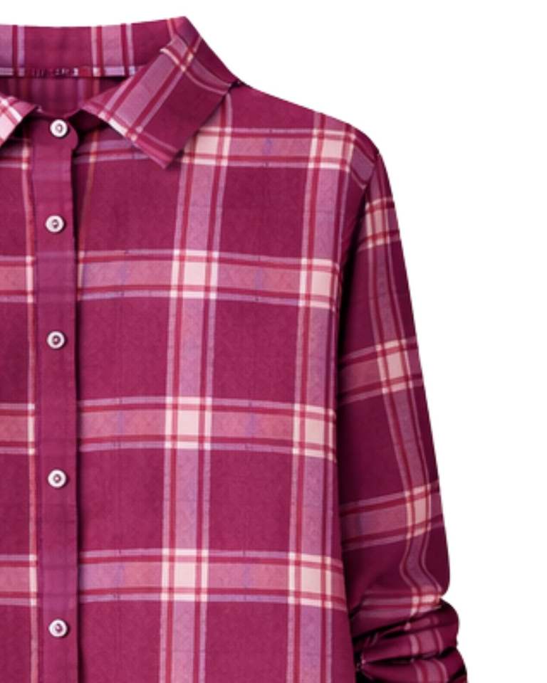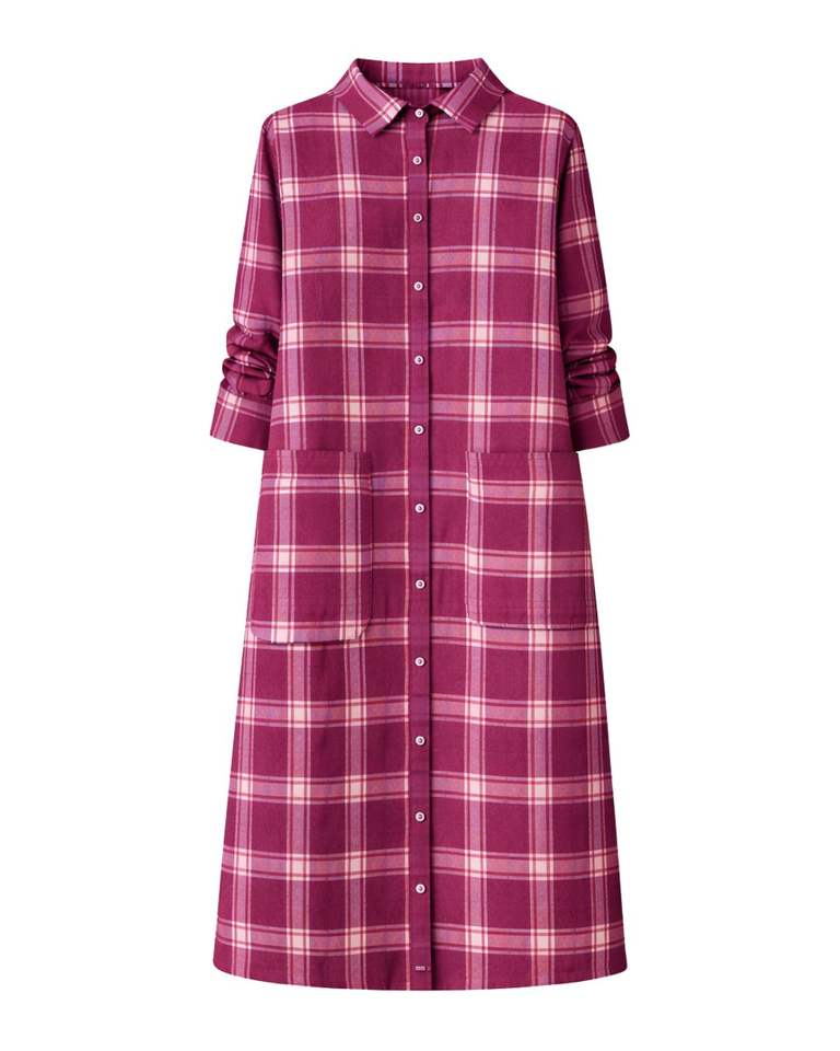 Maroon Plaid Womens Long Sleeve Button Down Shirt Dress Casual Checked Midi Dress With Pockets For Daily Wear Custom OEM Supplys