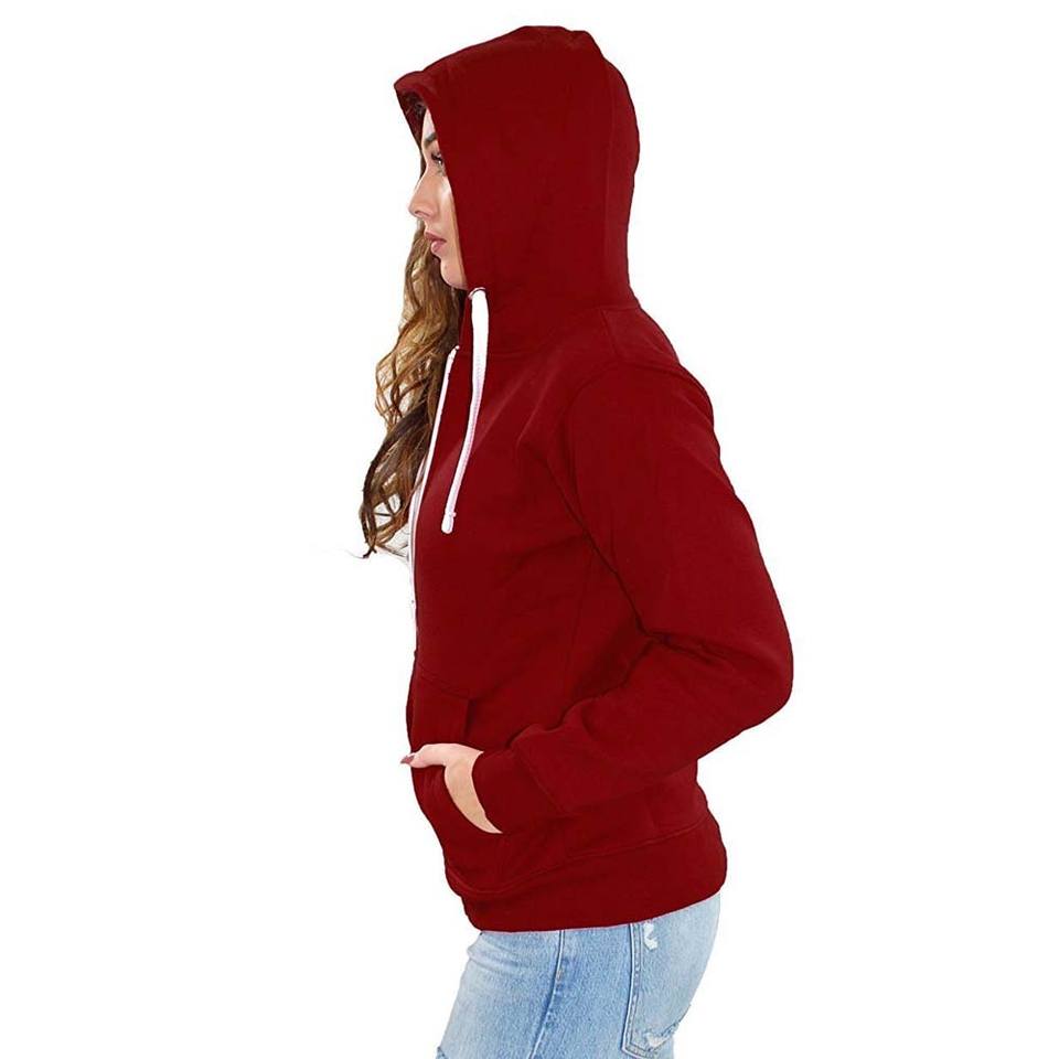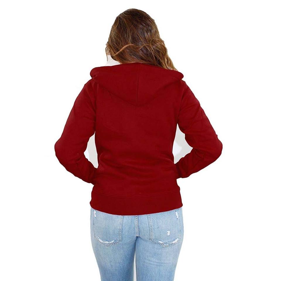 Maroon Red Ladies Women Plain Zip up New Fleece Red Top Hoodie