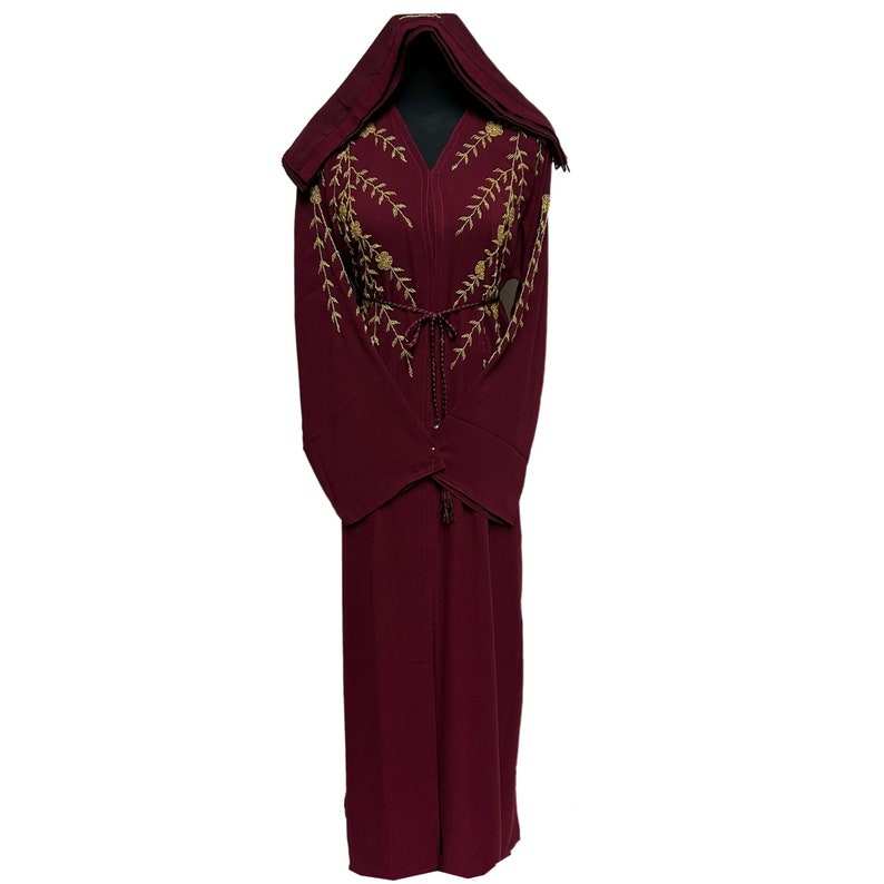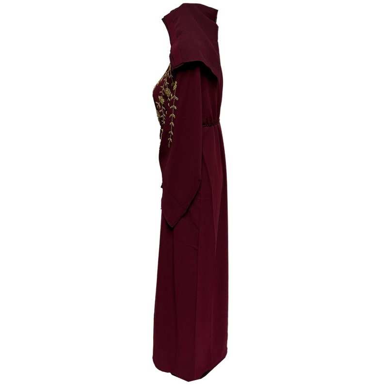Maroon Women's Open Front Silk Chiffon Anti-Wrinkle Abaya Long Dress with Hand Bead Work for Prayer