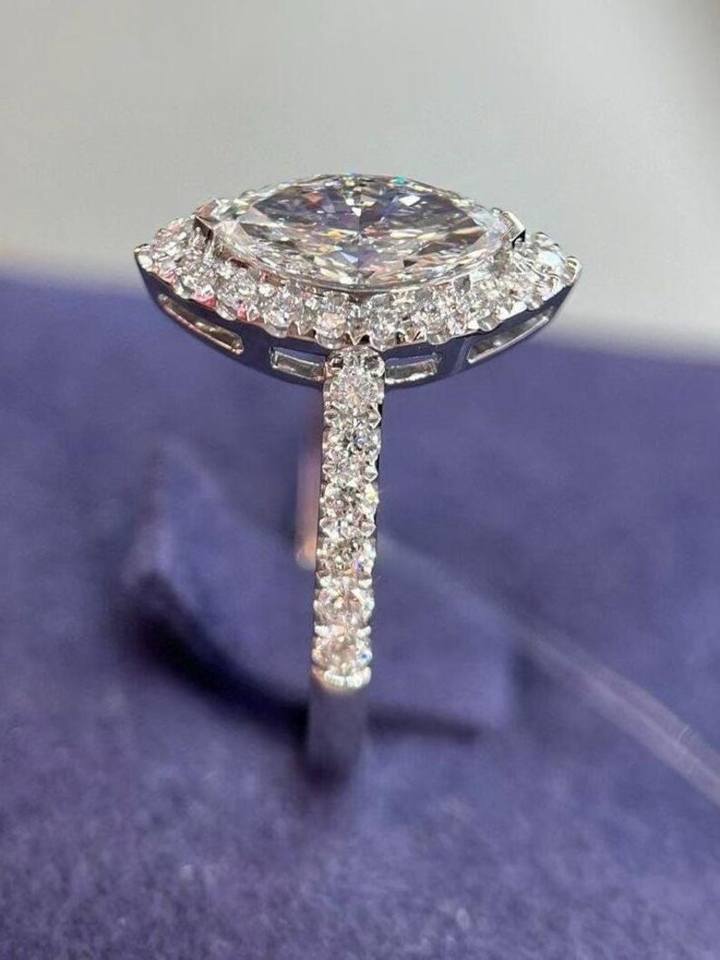 Marquis Moissanite Diamond Halo Classic Ring Surprise Jewelry For Her Original 925 Silver Wedding Jewelry for Brides Parties