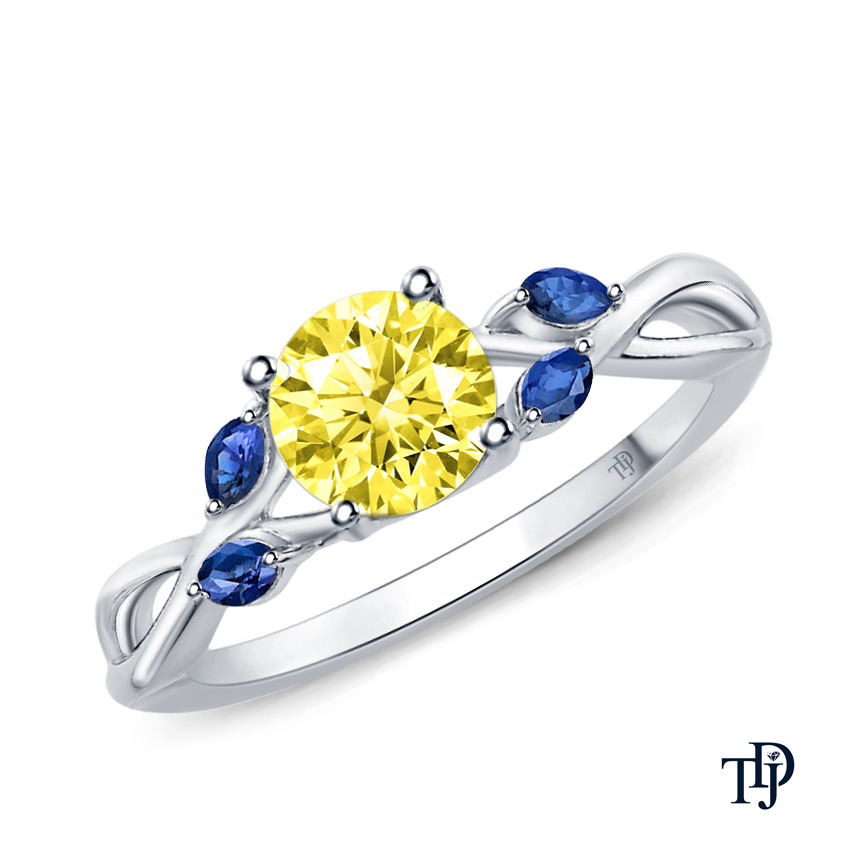 14K Gold Marquise Blue Accent Leaves Vine Style Yellow Sapphire Ring