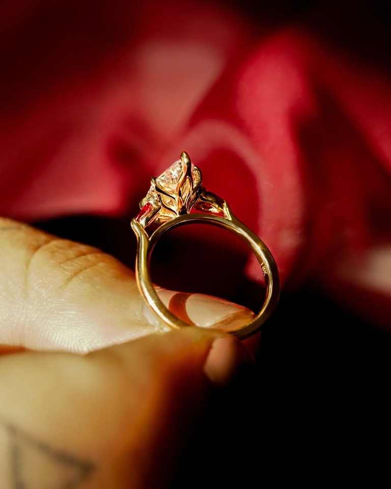 Marquise Cut 12x6mm Diamond Engagement Ring 18K Gold Plated Sterling Silver Red Side Stones Women Solitaire Three Stone