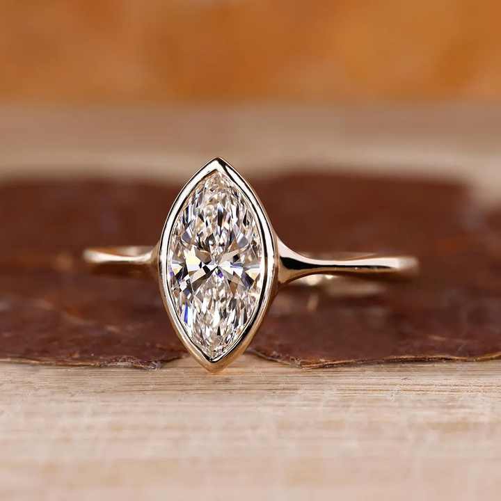 Marquise Cut Cubic Zirconia Diamond Engagement Ring Custom 1-3 CT Trendy Bezel Set Solitaire Wedding Anniversary Gift Women 925