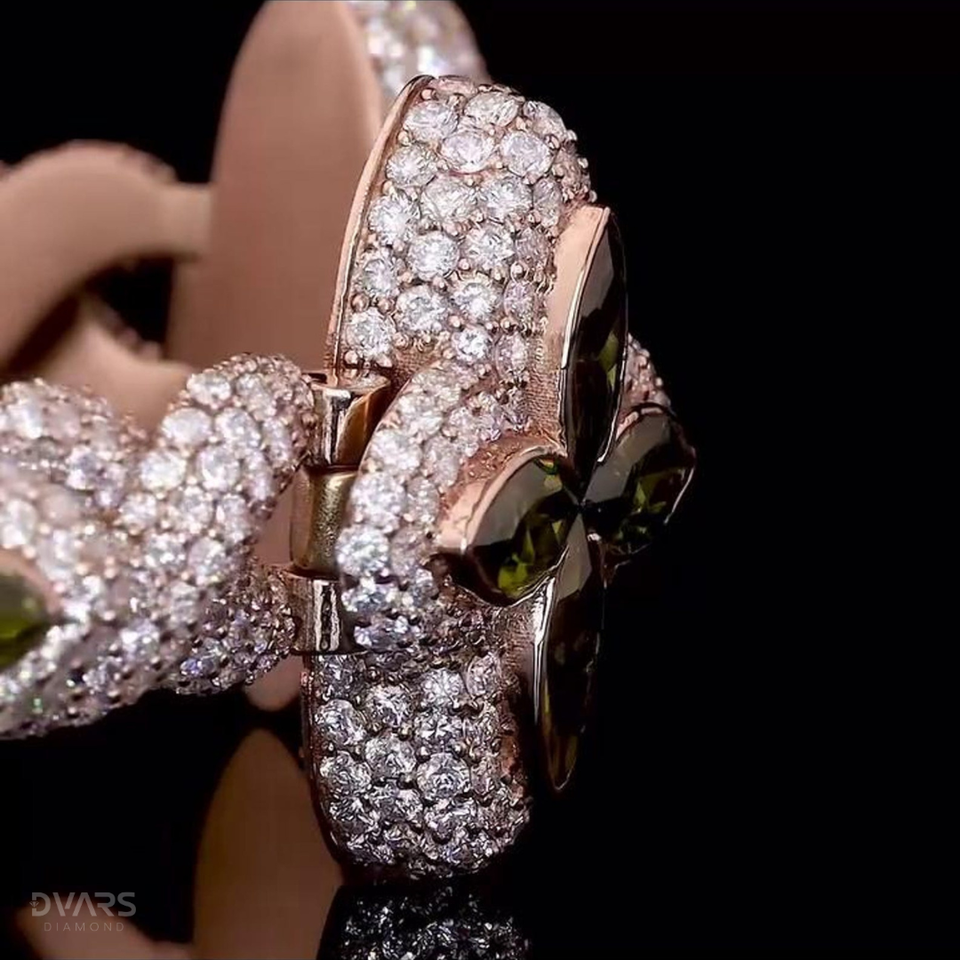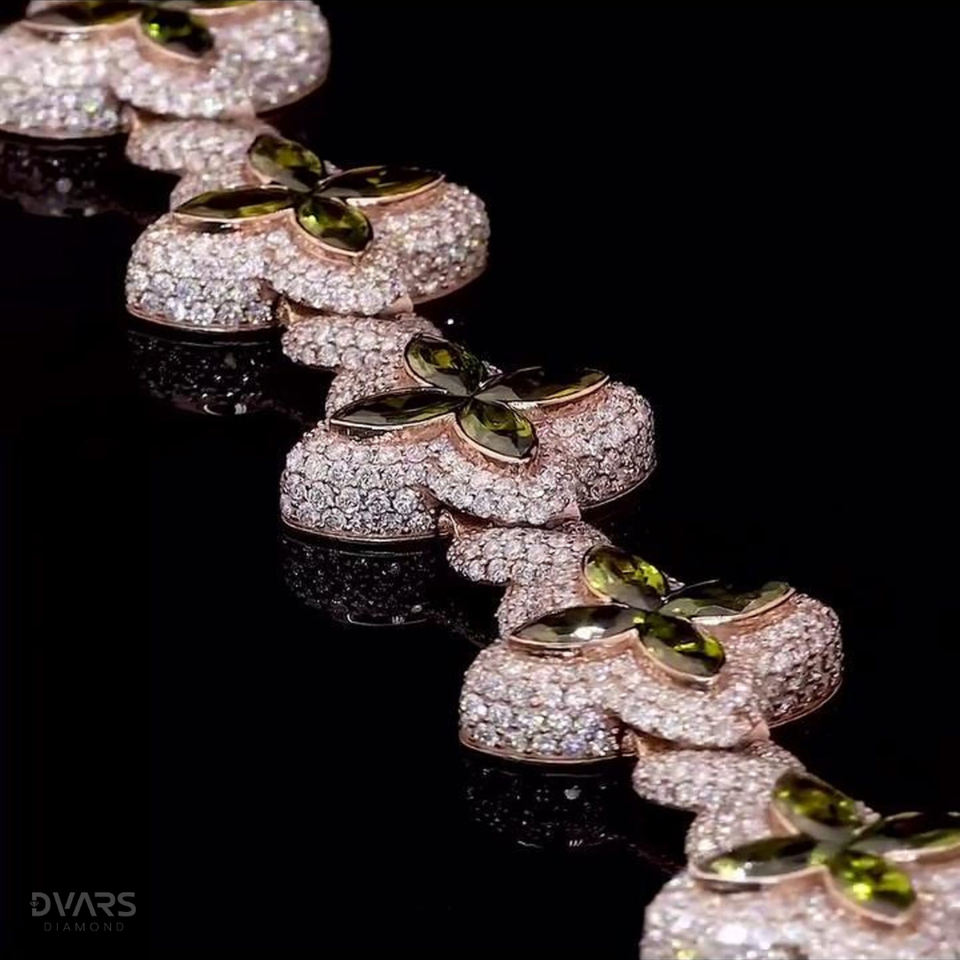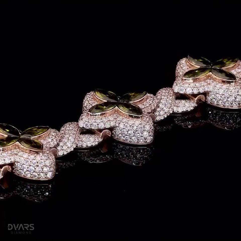Marquise Cut Green Peridot Four Leaf Clover Bracelet Infinity Link Bracelet Passes Diamond Tester Shamrock Lucky Spring Jewelry
