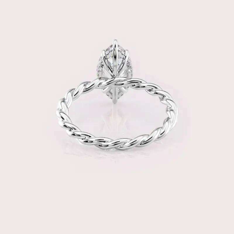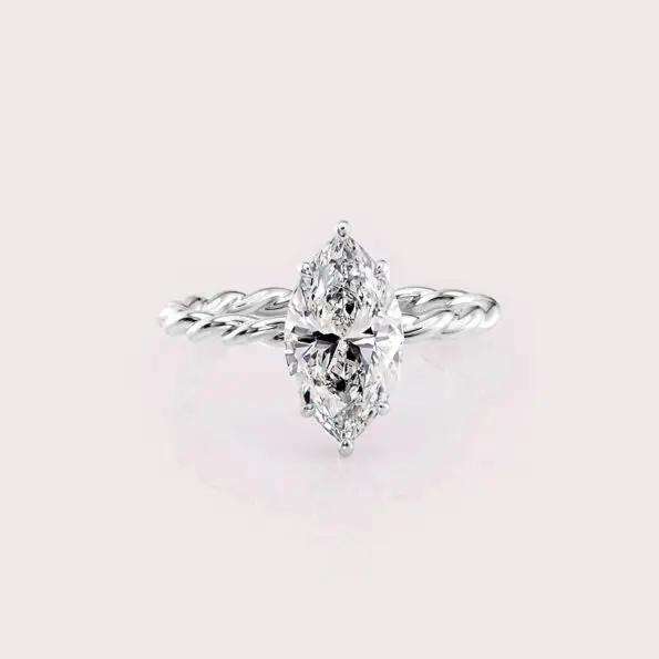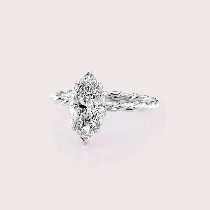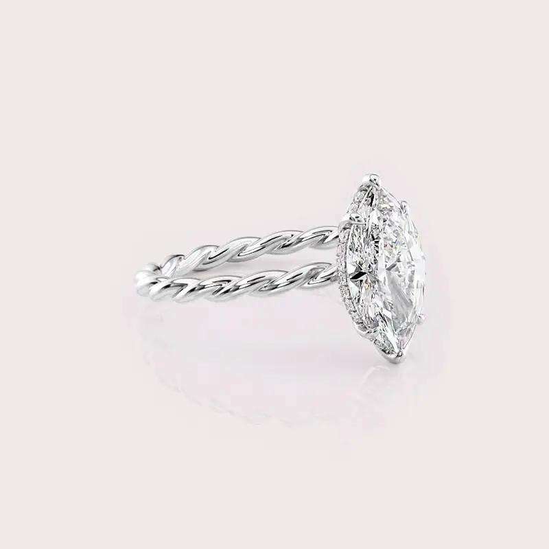 Marquise Cut Lab Grown Diamond Engagement Ring with Twisted Rope Band in Solid 925 Sterling Silver