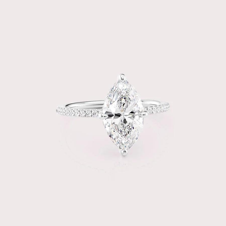 Marquise Cut Lab Grown Diamond Engagement Ring with Pave Band in Solid 925 Sterling Silver