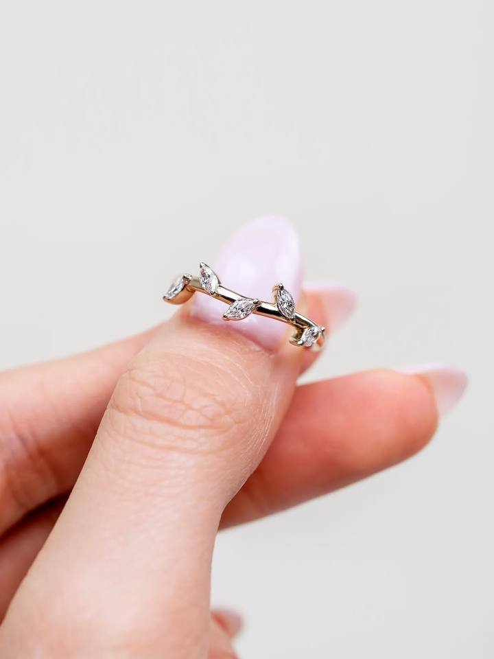 Marquise Cut Lab Grown Diamond Ring 14K 18K Yellow Gold Open Band Minimalist Women Fashion Ring Custom Fine Jewelry Wholesale
