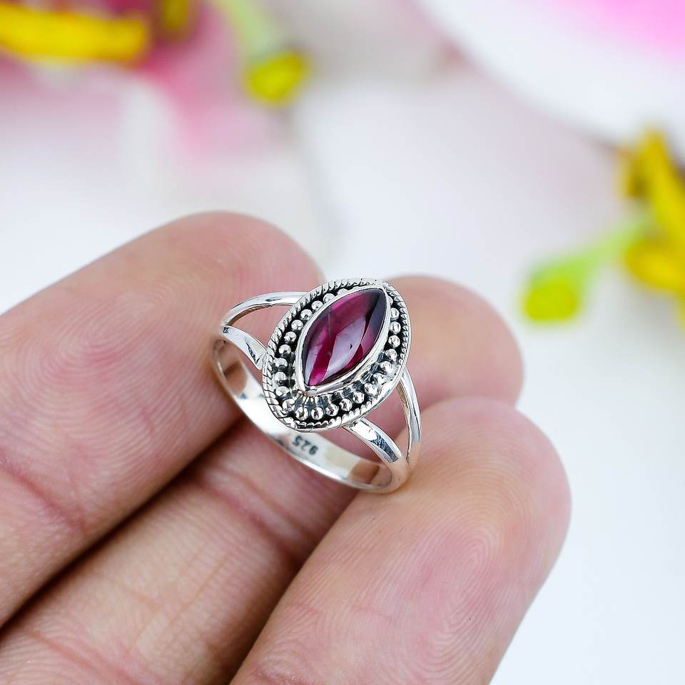 Marquise Cut Red Gemstone Sterling Silver Ring | Handmade Vintage Style Statement Ring For Women