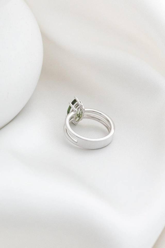 Marquise Green Sapphire Engagement Ring Double Band Sterling Silver Bridal Jewelry Elegant Wedding Gift For Her