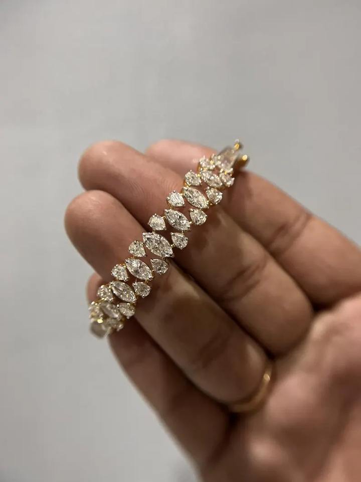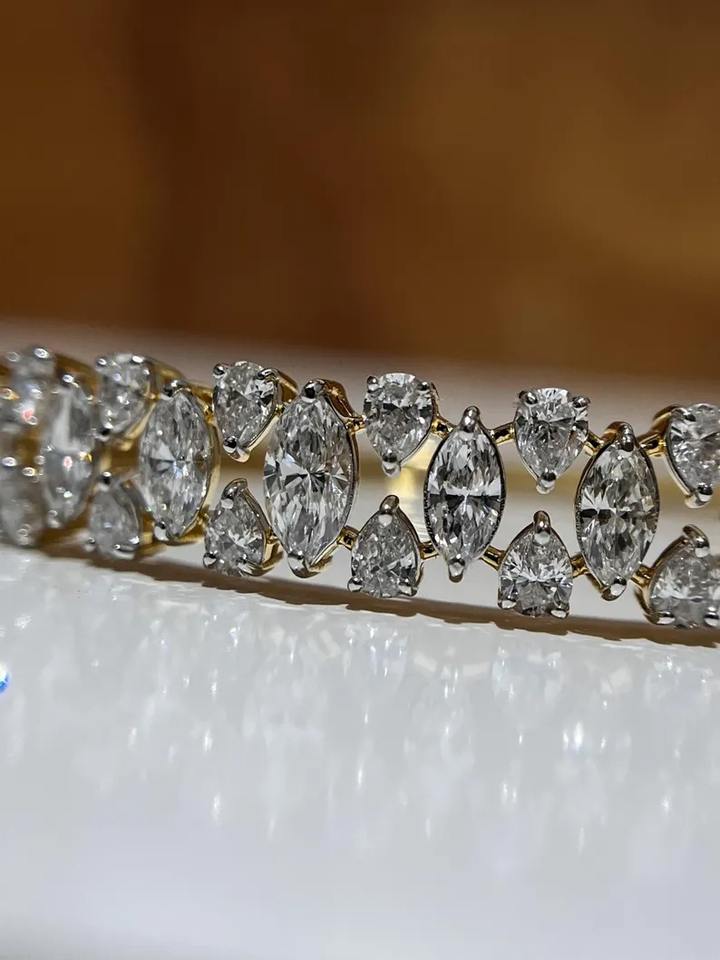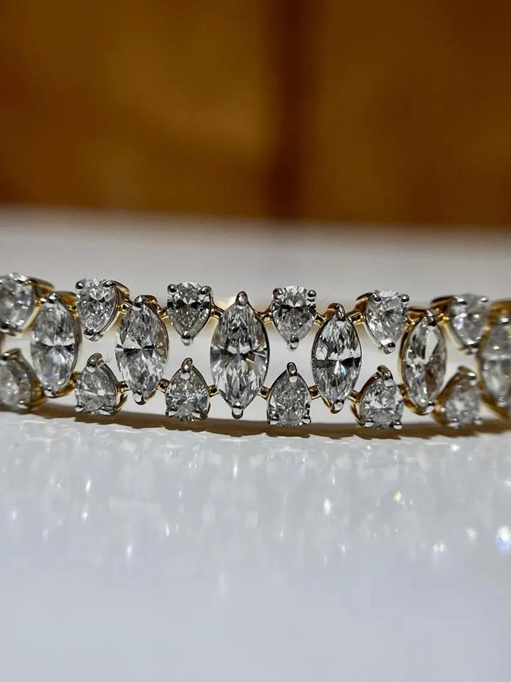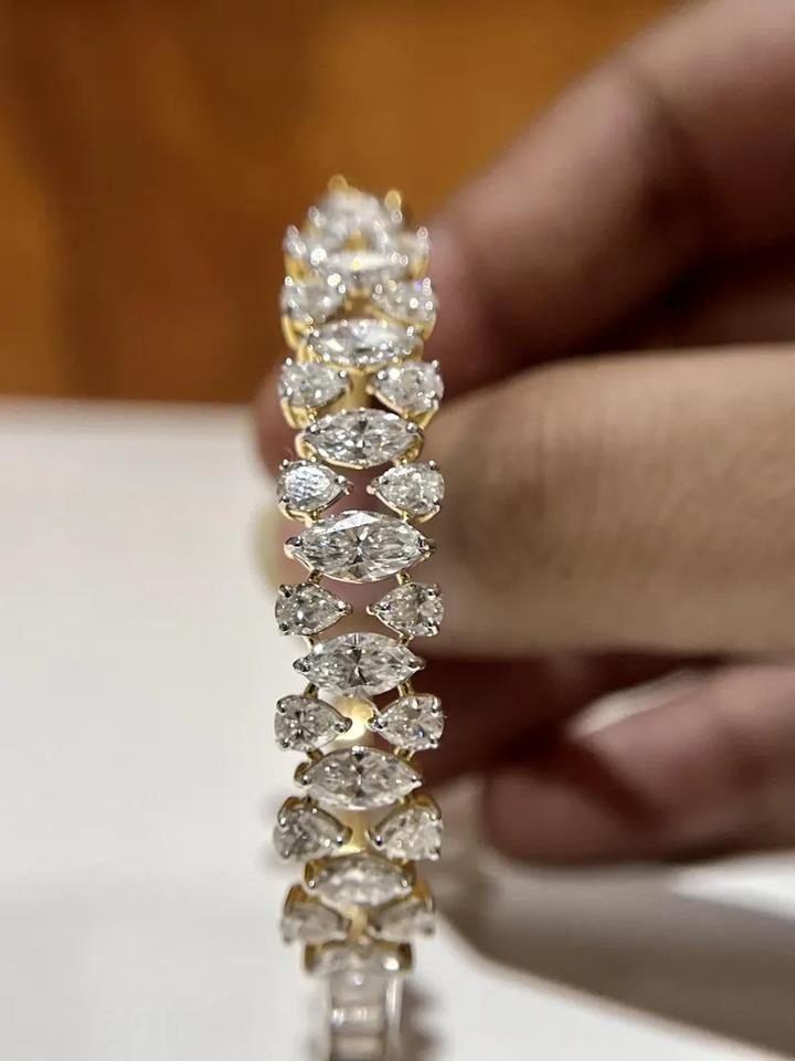 Marquise Pear Diamond Bracelet Half Eternity Bangle Stackable Moissanite Jewelry Christmas Sale