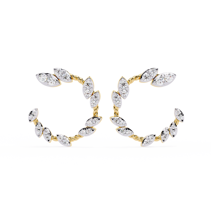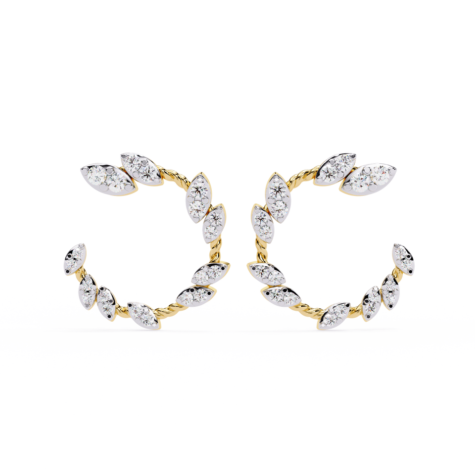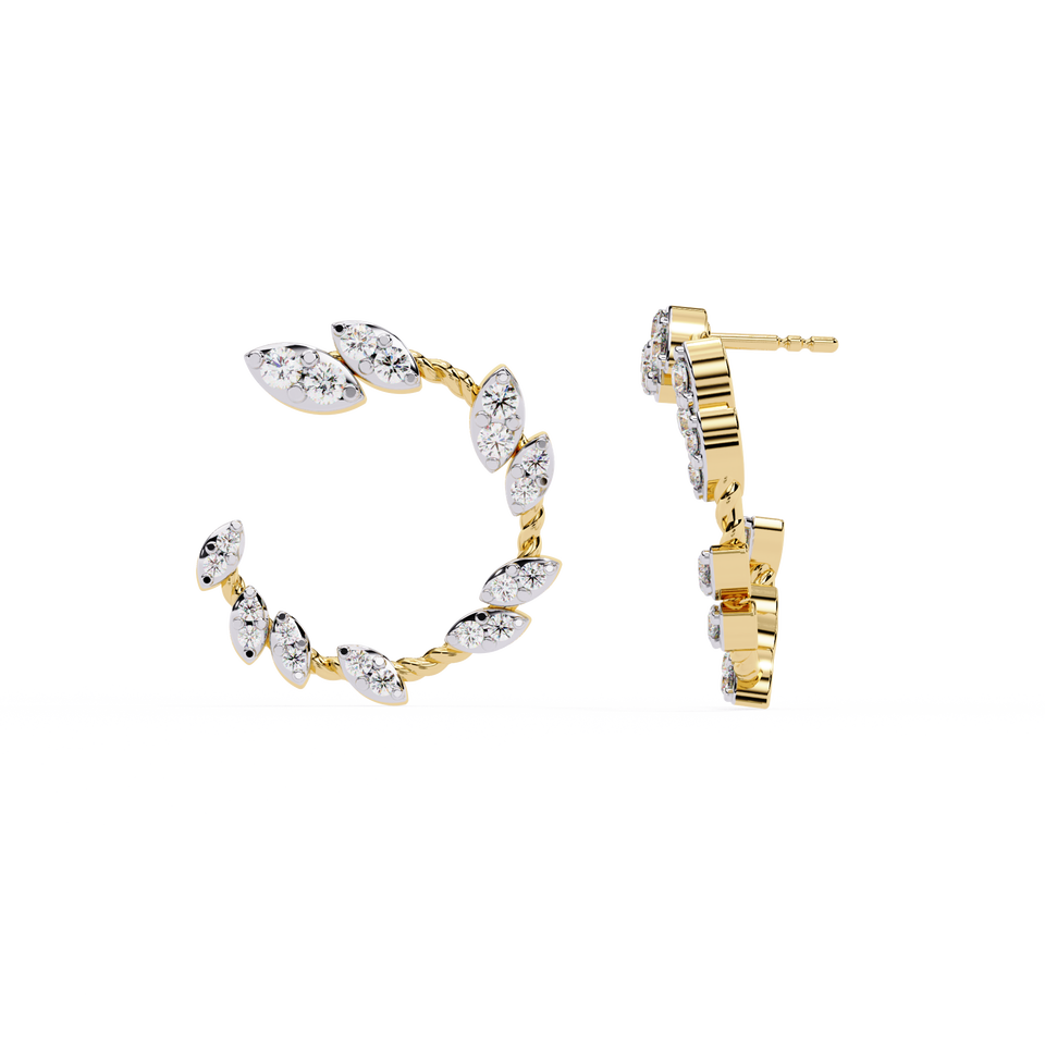 Marquise Petal Stud Earrings Women Elegant Floral Design Brilliant Cut Diamond Vintage Style Zinc Alloy 14K Gold Plated
