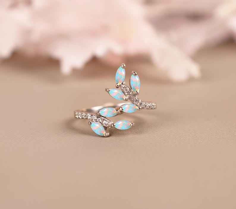 Marquise White Opal Engagement Ring Opal Antique Wedding Ring Anniversary Gift For Her