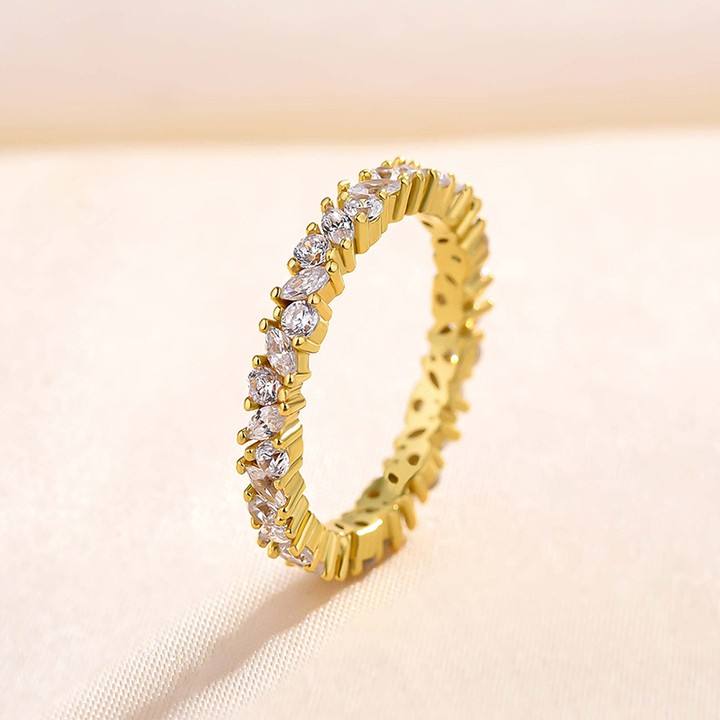 Marquise and Round Cut Moissanite Eternity Band Yellow Gold Plated 925 Silver Alternating Stone Design Fine Bridal Jewelry