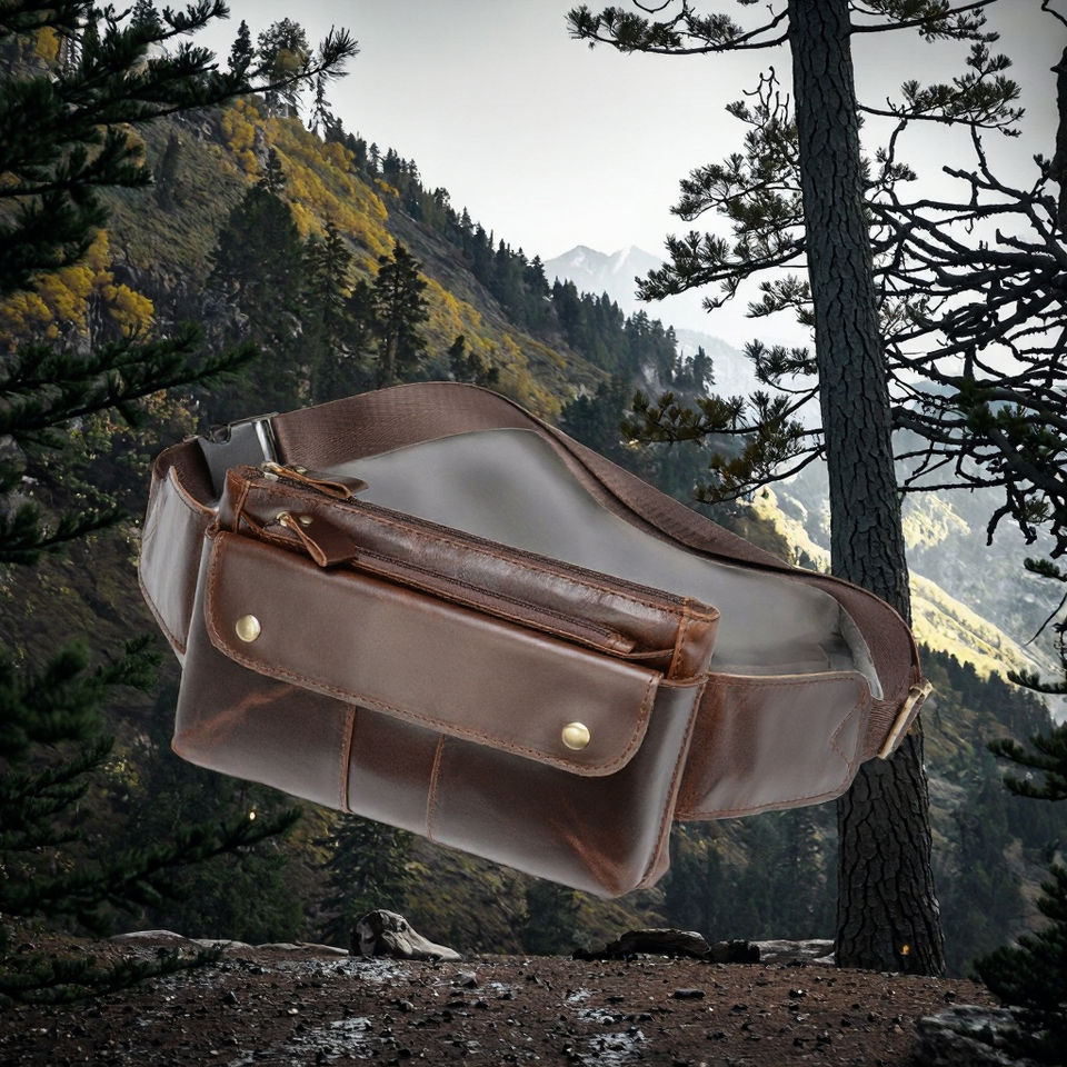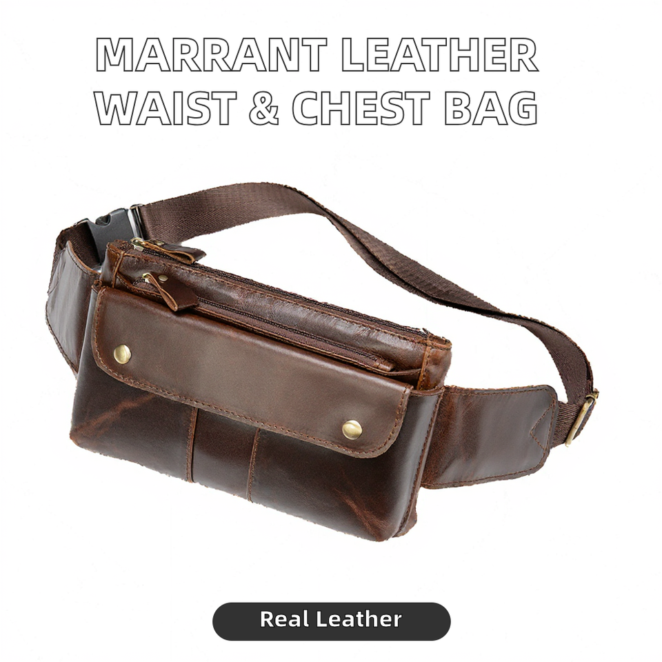 Marrant Men's Genuine Leather Fanny Pack Vintage Style Sport Travel Waist Bag Zipper Closure Shoulder Crossbody Sling Chest Bag