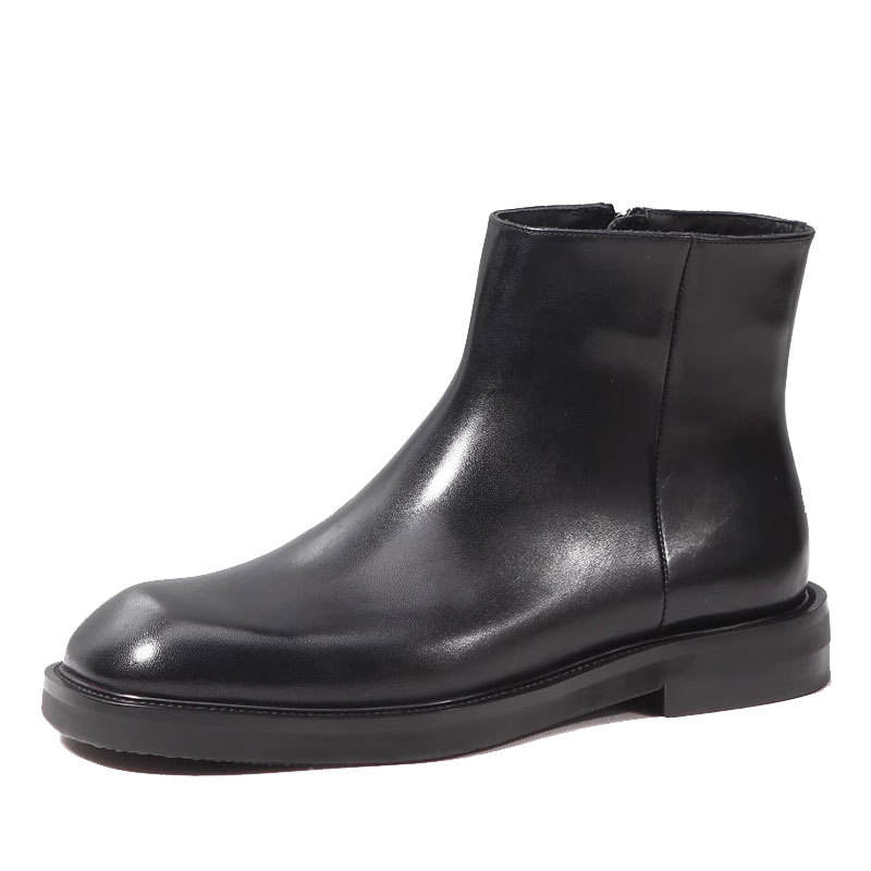 Martin Boots Cowhide Thick-soled Boots, Genuine Leather Side Zipper, English Style Hand-carved Patterns