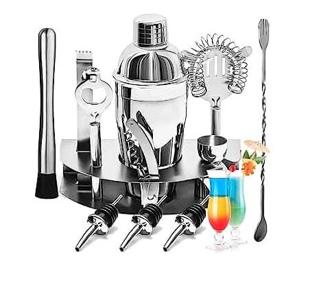 Martini Bartender Kit Bar Set Silver Stainless Steel with Bamboo Stand Laser Gift White Metal Customized Tools Box Pcs