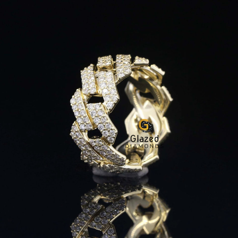 Marvelous Cuban Chain Design Hip Hop 925 Sterling Silver Ring Crafted From Round Cut VVs Clarity Lab Grown Diamonds