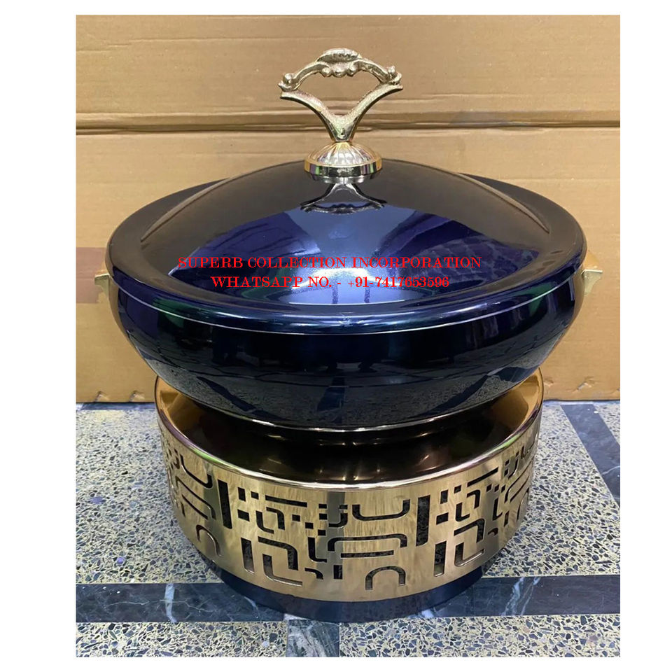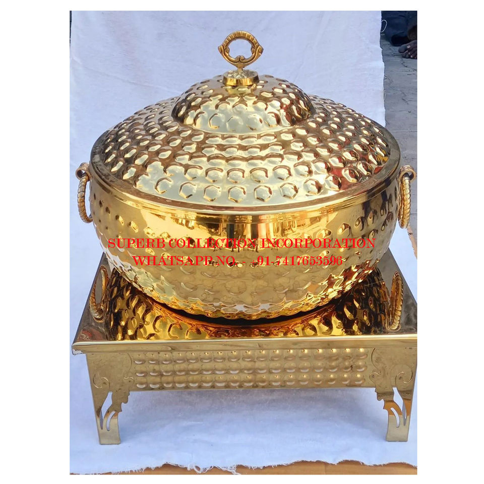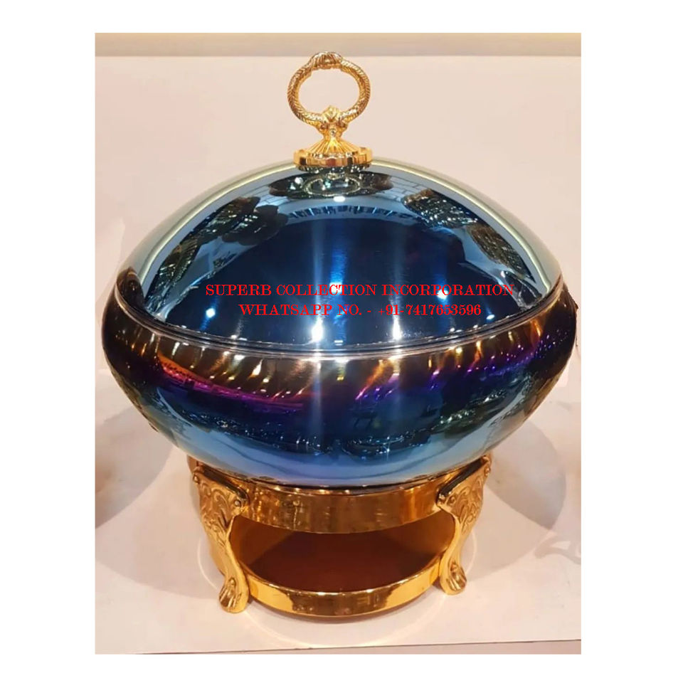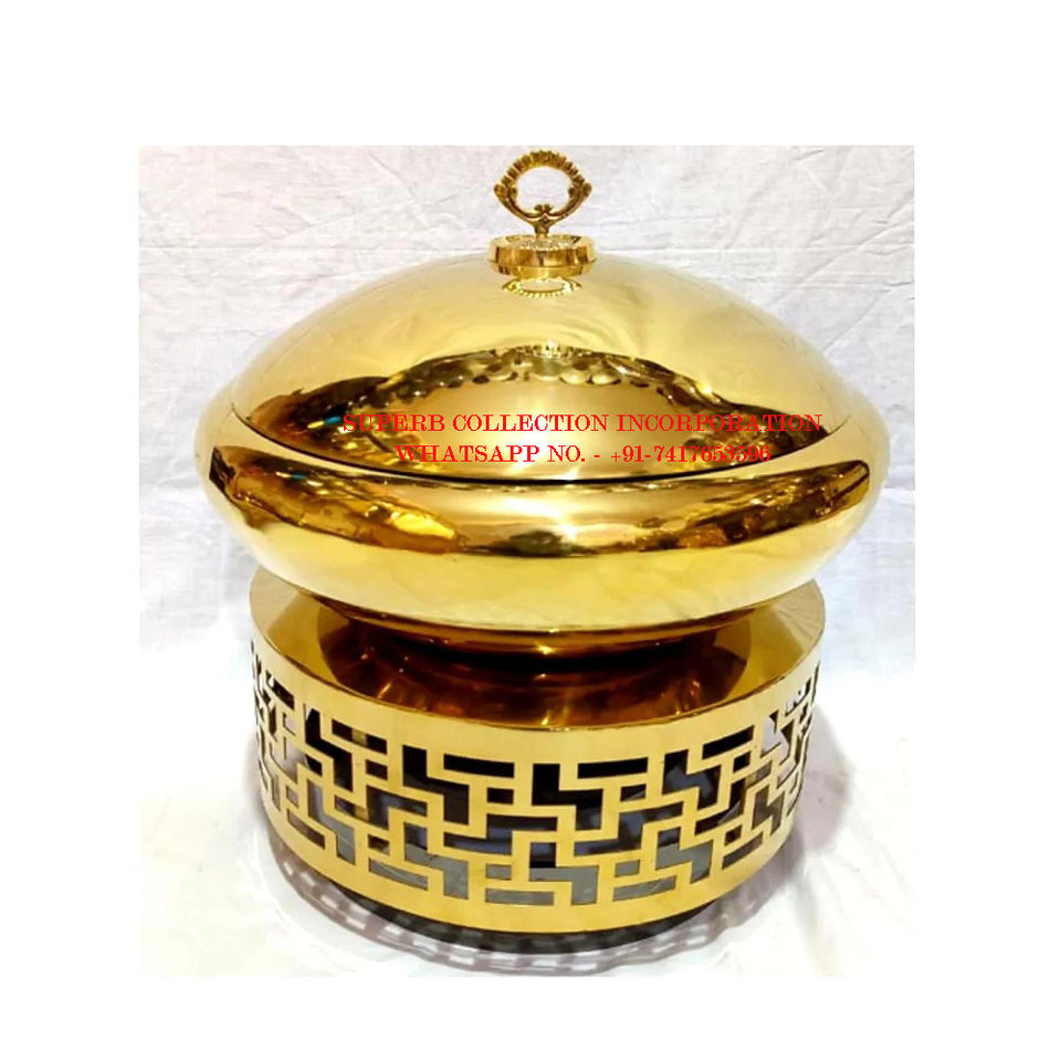 Marvelous Design Chafing Dish With Decorative Gold Stand And Roll Top Lid For Hotel Buffet And Events Catering Supplies On Sale