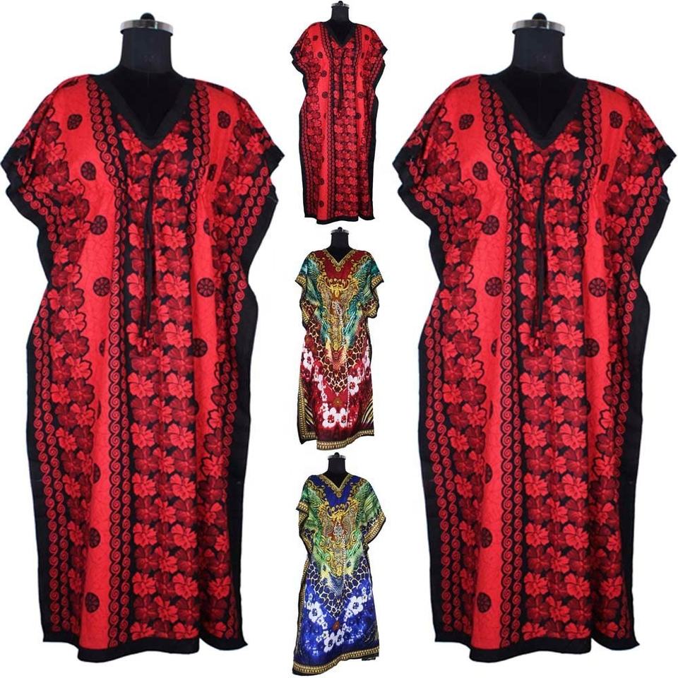 Marvelous Digital Printed Middle East Style Stylish Cotton Long Kaftan Womens Cotton Kaftan Maxi Sundress Loose Dress Hippie