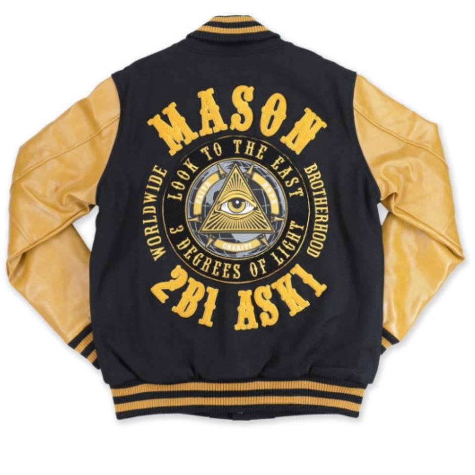 Mason Wool Varsity Jacket Black Men Polyester Waterproof Hooded Winter Embroidered Logo Front Back Sleeve College Greek