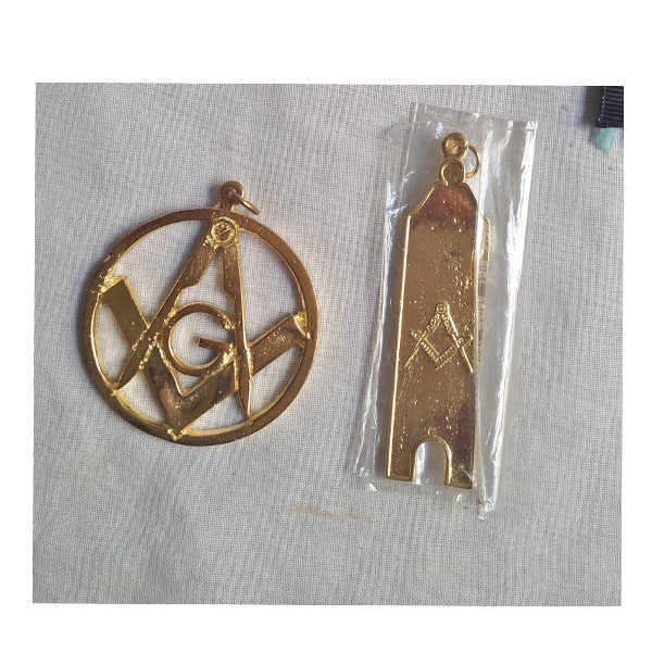 Masonic 9 CT GOLD MASONIC COMPASS & SET SQUARE ROUND PENDANT / CHARM 2.28 GRAMS Masonic Knights Templar Freemason Ribbon