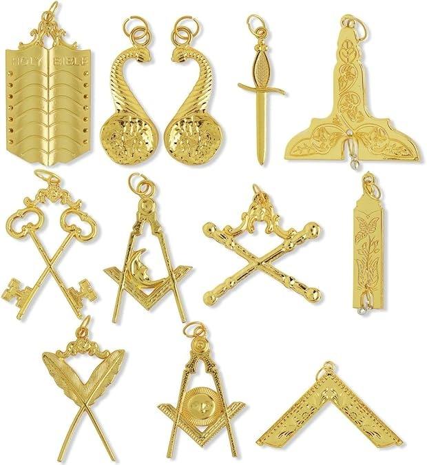 Masonic Blue Lodge Officer Collar Jewels (Gold) Set of 12 Pieces - Official Regalia for Lodge Leadership