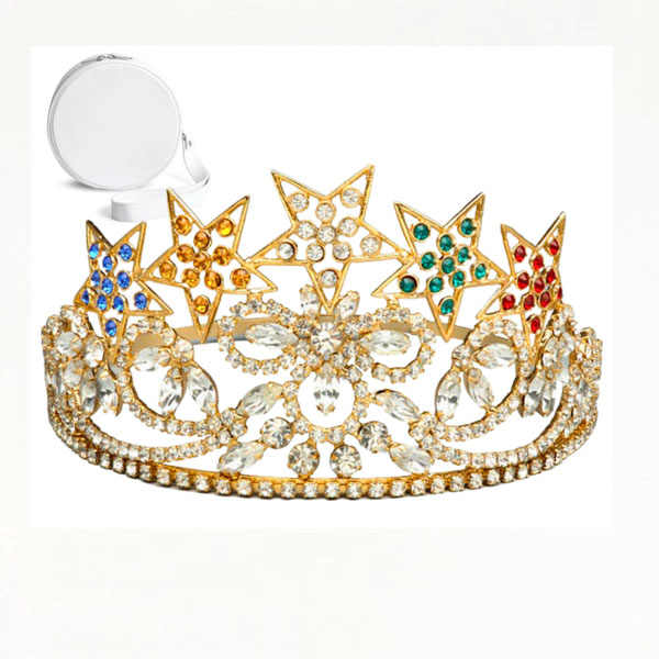 Masonic Freemason 5 STARS OES GOLD TONE Rhinestones O.E.S Adjustable CROWN Customize Color Logo Provincial Star Best Quality