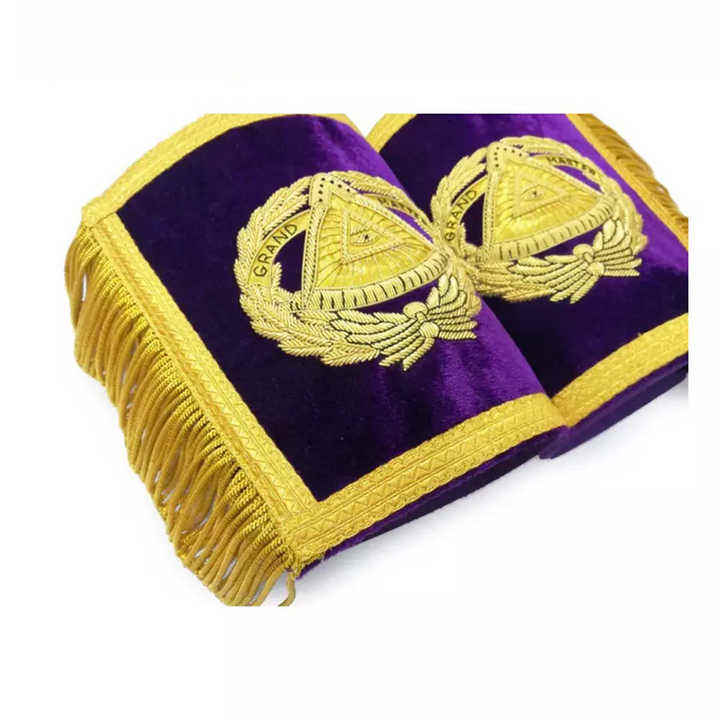Masonic Grand Masters Custom Made Embroidered Cuffs Blue Lodge Purple Hand Bullion Embroidery Sequins Magnet Attachement Fringe