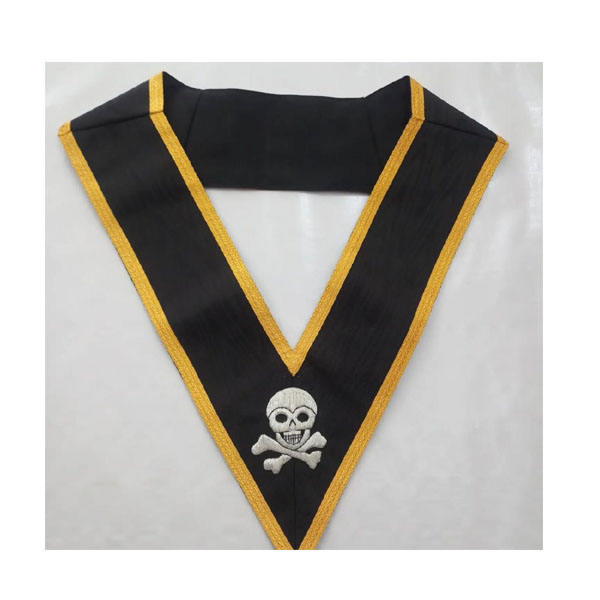 Masonic Grand Officers Malta Regulation Collar Black Moire with Elegant Design Hand Embroidered Gold and Black Gift For Him