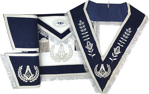 Masonic Master Mason Apron Set Apron,Collar gauntlets Silver Handmade Embroidery Navy Fabric type Velvet