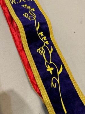 Masonic Oes W.M Sash, Order of Easter Star Worthy Matron Sash Purple Velvet with Golden fringe and Red Lining