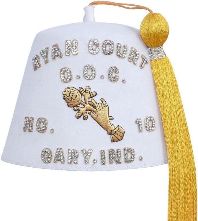 Masonic Officer Wool Hat 3D Embroidered Bullion Rhinestones Custom Size Shriner Fez Hat Cotton Sweatband Tassel for Casual Wear