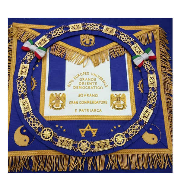 Masonic Regalia Past Master Apron Gold Embroidered With Chain Collar Blue Velvet Backing Quality Embroidered Apron GRAND LODGE