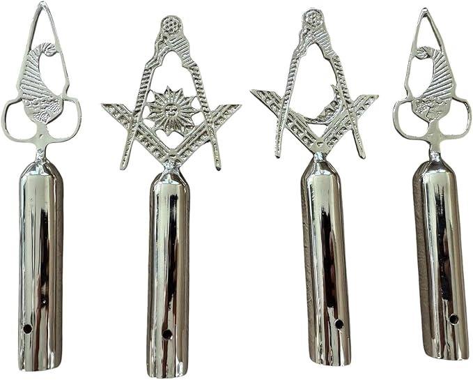 Masonic Regalia Silver Masonic Blue Lodge Tops Set with MM Emblem Freemason Masonic Pole (Set of 4)
