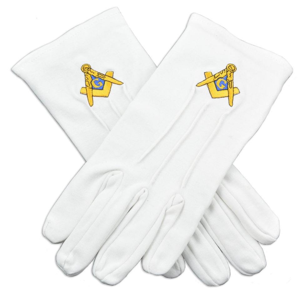Masonic Regalia White 100% Cotton Gloves Square Compass Yellow Order Golden Circle Gloves Beaded Decoration Safety Pin Included